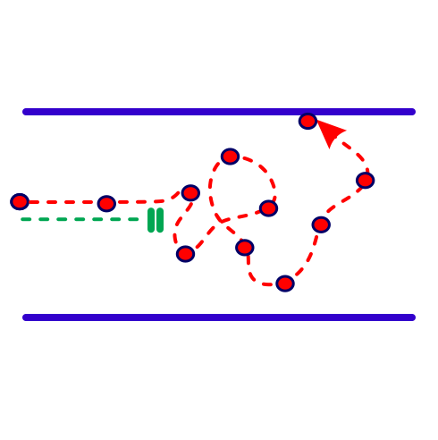 Ruch jest losowy i niezależny od kierunku przepływu powietrza.